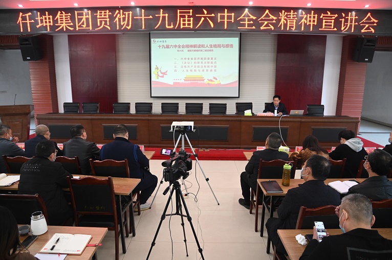 為深入學(xué)習(xí)貫徹黨的十九屆六中全會精神,進一步深刻領(lǐng)會全會精神的豐富內(nèi)涵和核心要義。12月1日上午,仟坤集團組織召開學(xué)習(xí)貫徹十九屆六中全會精神宣講會,特邀請到德陽市二級巡視員張興鴻專題授課。德陽市委組織部四級調(diào)研員、組織四科科長莫檸綪,綿竹市委組織部“兩新”工委專職副書記王興平,綿竹高新區(qū)黨群工作部副部長黃銳,集團黨建指導(dǎo)員張英到會指導(dǎo)工作,集團董事長謝世千、總裁謝澤波以及集團黨委委員、全體黨員和中高層管理人員近200余人參與學(xué)習(xí)。會議由集團黨委書記、副總裁周述軍主持。
