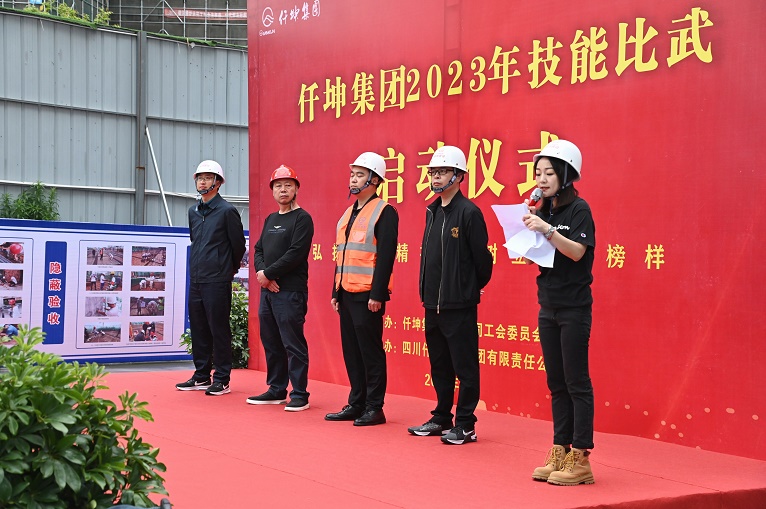 集團為加強各公司高技能人才隊伍建設(shè),提高技能操作隊伍素質(zhì),推動職業(yè)技能大賽和技術(shù)比武活動有效開展,為鼓勵廣大員工立足崗位、創(chuàng)先爭優(yōu),造就有思想、有技術(shù)、敢創(chuàng)新的技能人才隊伍,營造“練中學(xué)、學(xué)中干”的良好學(xué)習(xí)工作氛圍。5月8日上午,由集團工會主辦,仟坤建設(shè)承辦的“仟坤集團2023年技能比武啟動儀式”在仟坤建設(shè)天朗五期項目部隆重啟動。集團副董事長甯福富,集團黨委書記、副總裁周述軍,集團副總裁趙新強,各分公司總經(jīng)理及仟坤建設(shè)技能比武的裁判員和比賽選手參與了啟動儀式。啟動儀式由集團黨委副書記、人力資源部部長董云龍主持。