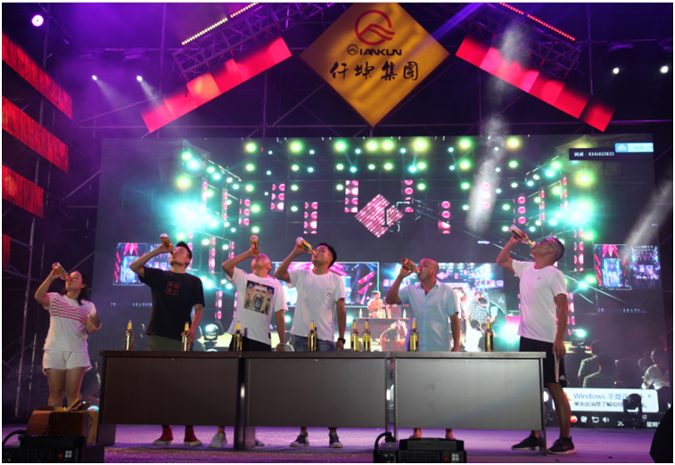 “六位啤酒一個組,兩瓶啤酒,誰最快飲下,誰就是冠軍!前三名獎品豐厚哦。”主持人向現場觀眾介紹著啤酒大賽的規(guī)則?,F場,貴州安順和綿竹兩地同時舉行啤酒節(jié),當互動屏幕打開時,兩地參賽者同時舉起酒瓶開始比拼模式,雖隔著屏幕,亦能感受激烈精彩的氛圍。“加油,雄起……”臺下兩地觀眾不停地為臺上的參賽選手鼓勁、打氣。“16秒,我們的冠軍產生啦!啤酒大人李文僅用了8秒就喝完了一瓶750ml的啤酒,兩瓶酒16秒就喝完了,真是高手在民間啊。”伴隨著主持人宣布大賽的成績,大家都舉起手中的酒杯,為冠軍喝彩。被盛邀參加啤酒節(jié)的貴州安順人楊昌倫表示,仟坤集團特意邀請了貴州安順的業(yè)主和表演團隊來到綿竹,兩地同時舉行啤酒節(jié),現場互動,既豐富了本地的文化生活,又吸引了很多外地朋友,讓更多的人了解仟坤,仟坤有實力,作為業(yè)主感到自豪。