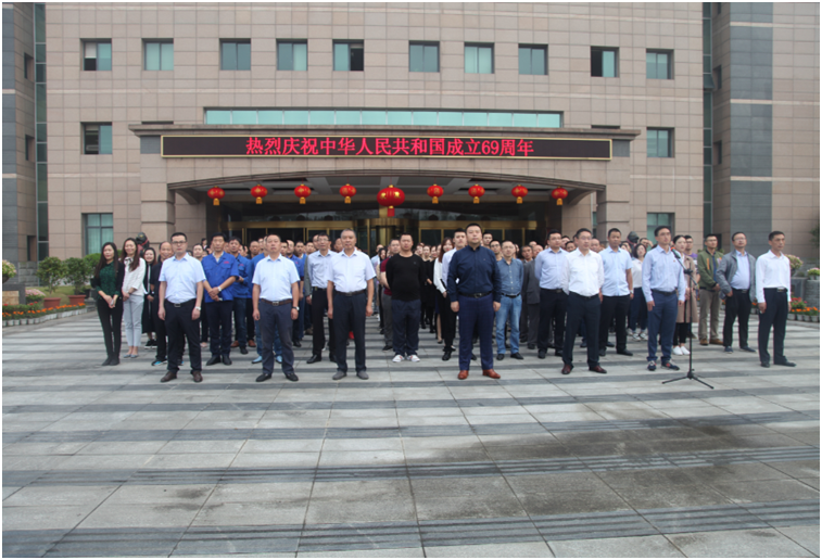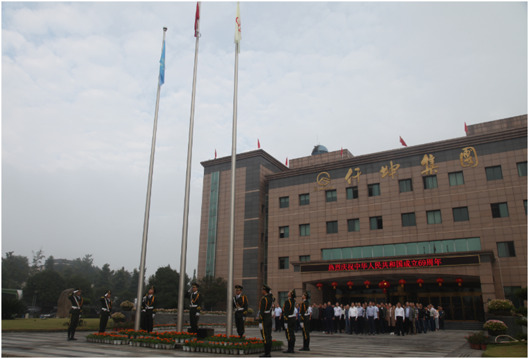 為喜迎中華人民共和國建國69周年,9月30日上午,集團(tuán)總裁謝澤波,常務(wù)副總裁葉金春,黨委書記、副總裁周述軍,副總裁趙新強(qiáng)以及集團(tuán)其它高層領(lǐng)導(dǎo)、各事業(yè)部中層以上管理人員和集團(tuán)總部員工著裝整齊的列隊(duì)于總部辦公樓前,隆重舉行升國旗儀式,在國旗護(hù)衛(wèi)隊(duì)護(hù)衛(wèi)下,鮮艷的五星紅旗在雄壯豪邁的國歌聲中冉冉升起,全體人員肅立旗桿下,向著國旗莊嚴(yán)地行注目禮。