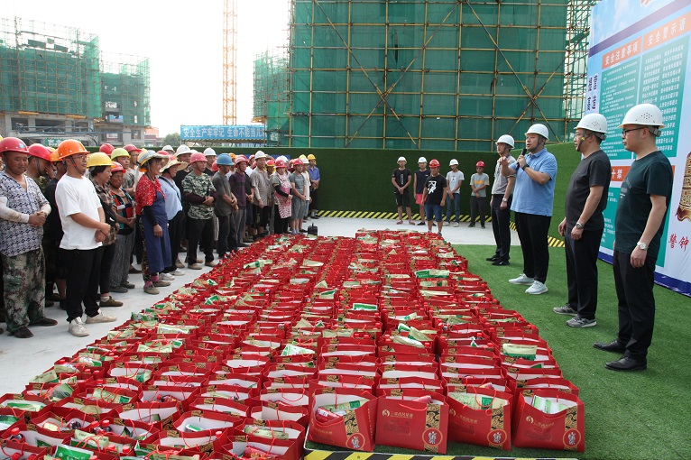 夏日驕陽(yáng)似火,建筑工地更是熱浪滾滾,為使廣大職工度過(guò)一個(gè)安全、健康、衛(wèi)生、清涼的夏季。8月10日上午,仟坤集團(tuán)總裁謝澤波,集團(tuán)常務(wù)副總裁葉金春,集團(tuán)黨委書(shū)記、副總裁周述軍,集團(tuán)副總裁趙新強(qiáng)來(lái)到仟坤水街和仟坤天璽項(xiàng)目工地看望仟坤建設(shè)的一線建筑工人。